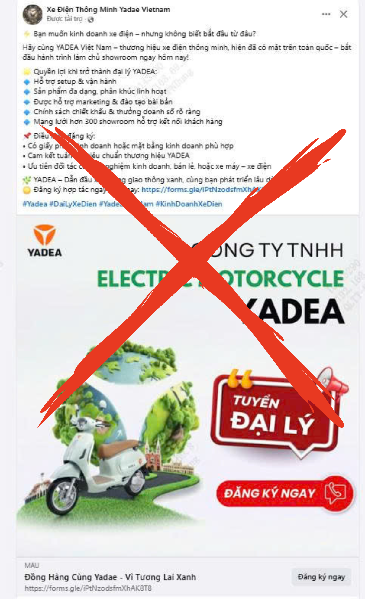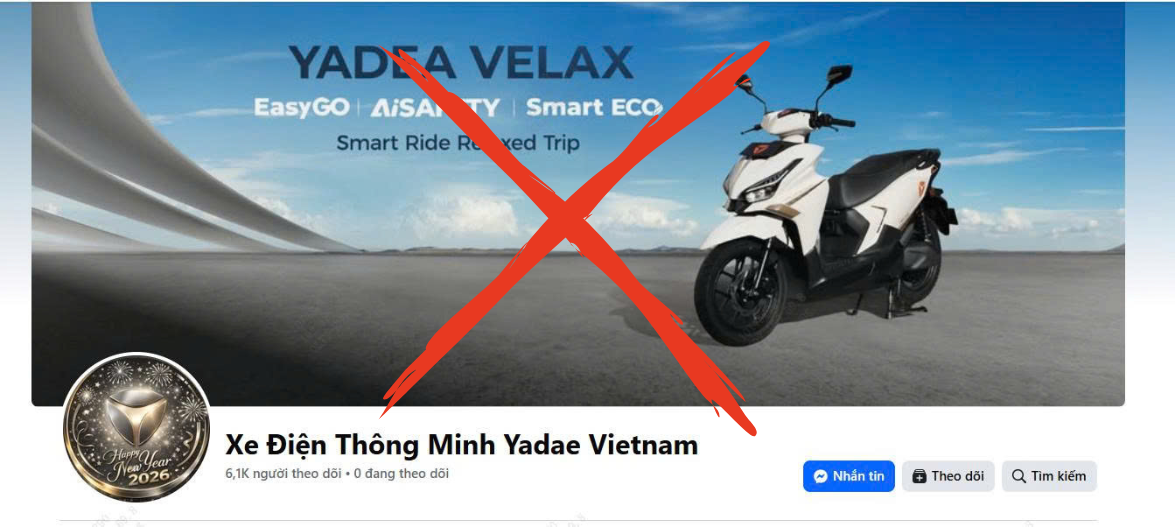 YADEA Việt Nam KHÔNG vận hành fanpage “Xe Điện Thông Minh Yadae Vietnam”