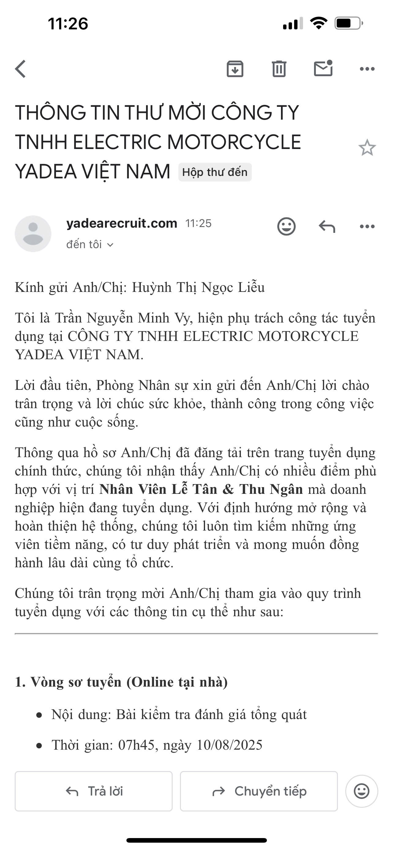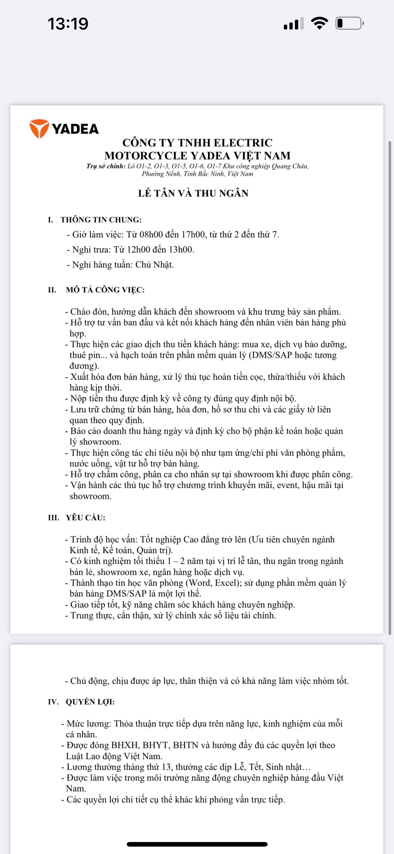 Thông tin tuyển dụng chính thức của YADEA Việt Nam: