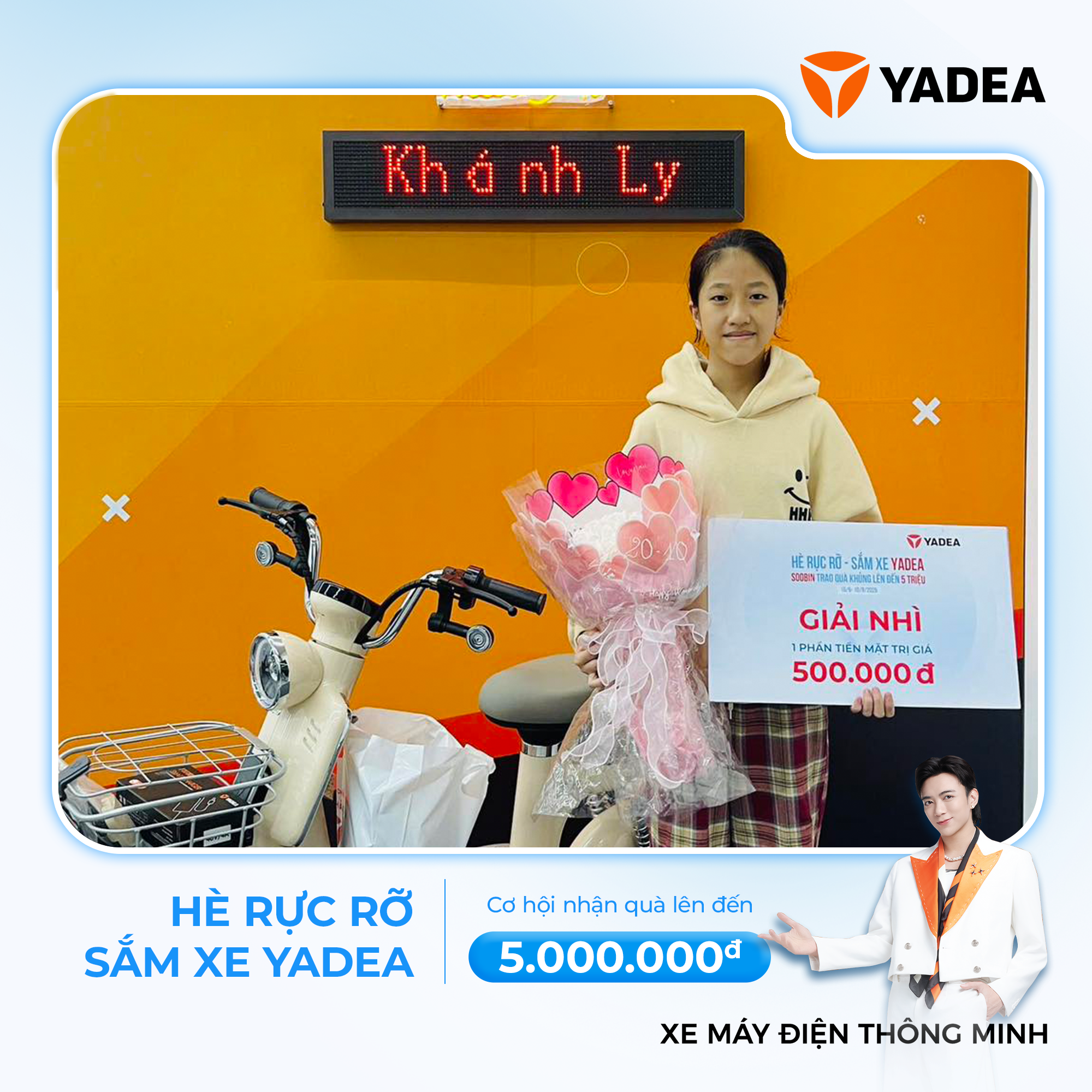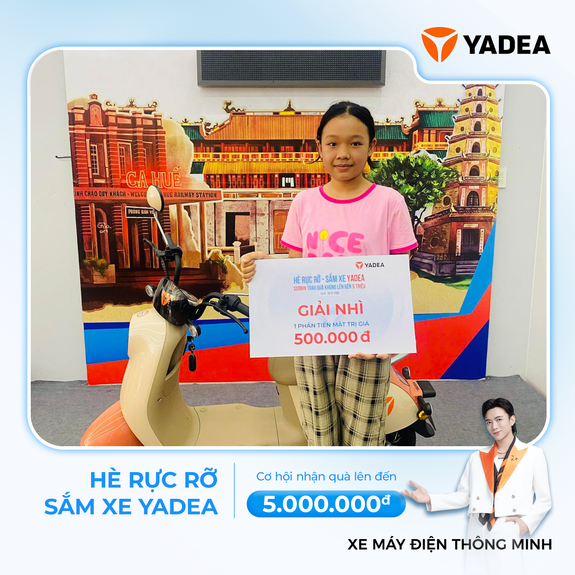YADEA xin gửi lời chúc mừng nồng nhiệt đến các khách hàng may mắn đã rinh về loạt quà tặng hấp dẫn trong chương trình “HÈ RỰC RỠ – SẮM XE YADEA, NHẬN QUÀ CỰC CHẤT LÊN TỚI 5 TRIỆU ĐỒNG!”.
