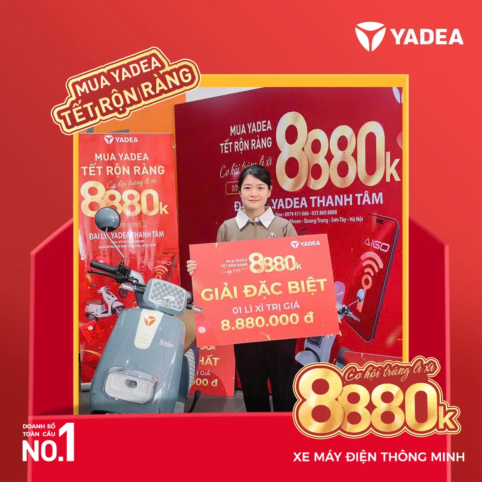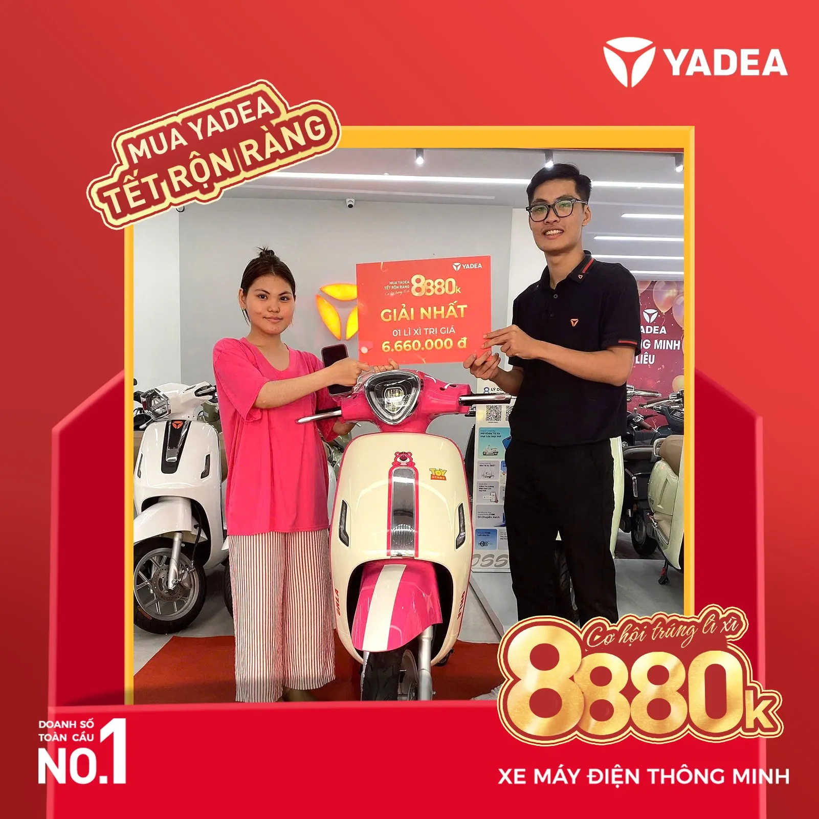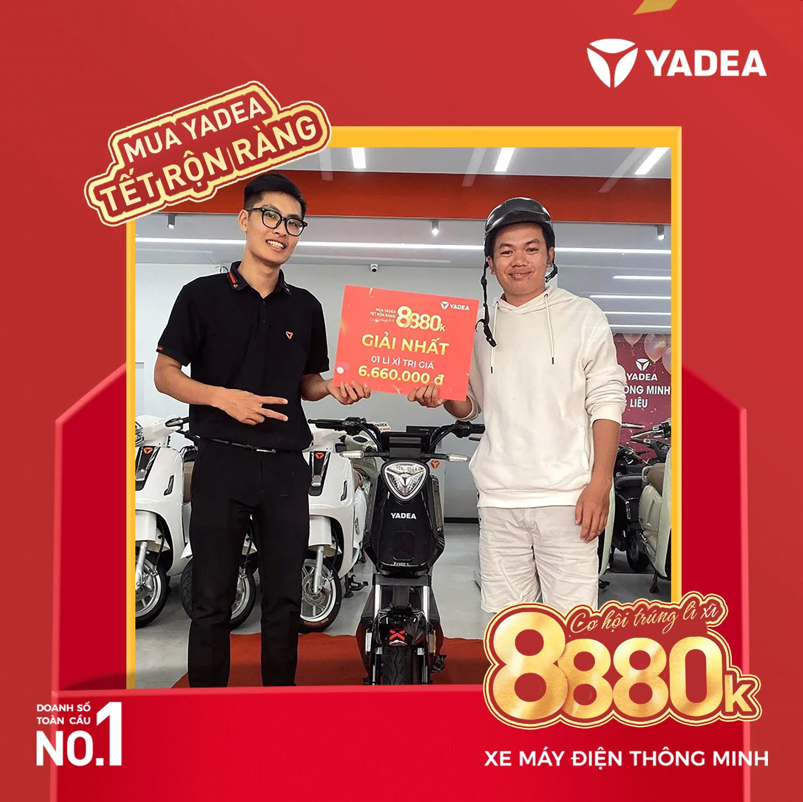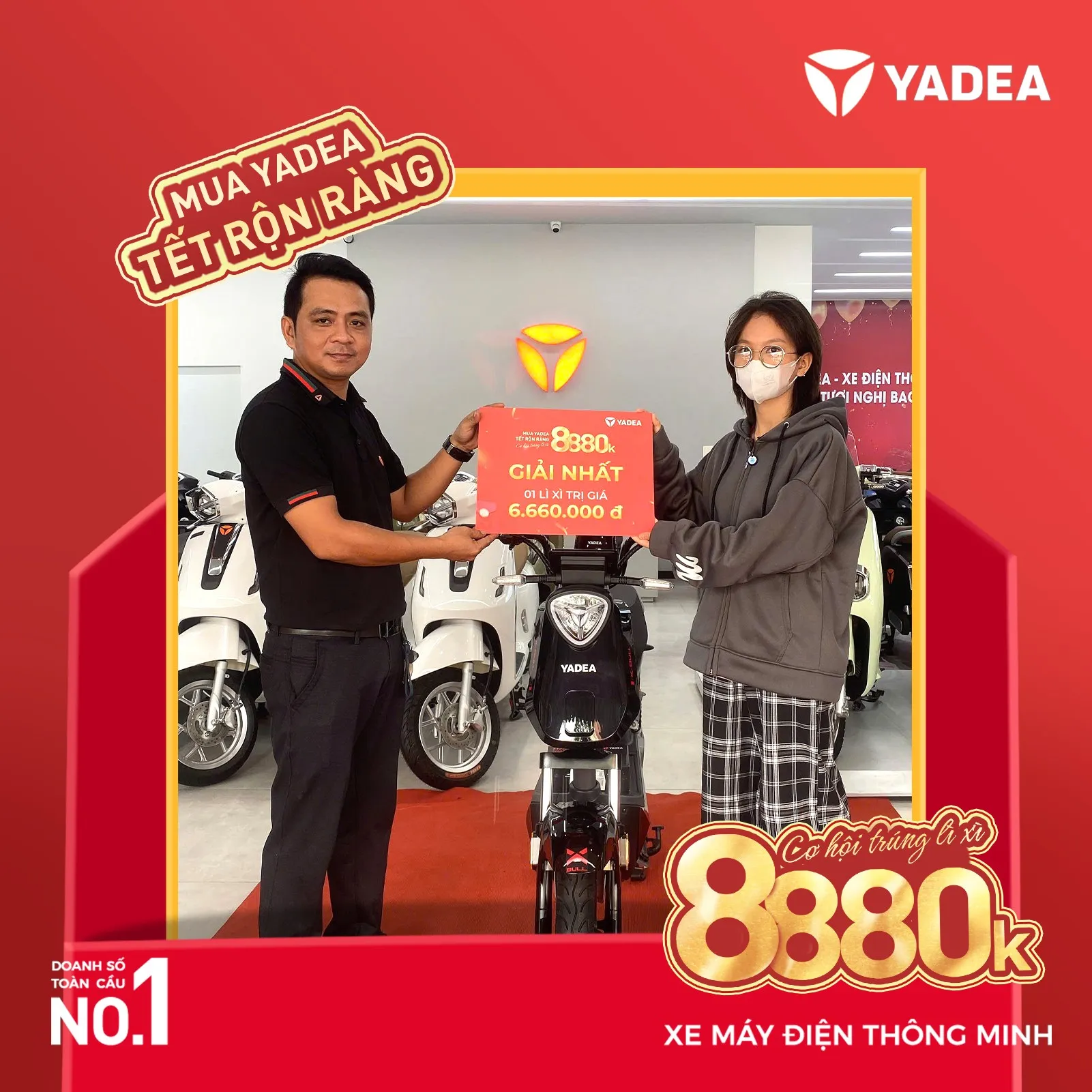 - Giải thưởng sẽ được trao tại cửa hàng YADEA nơi khách hàng mua xe.