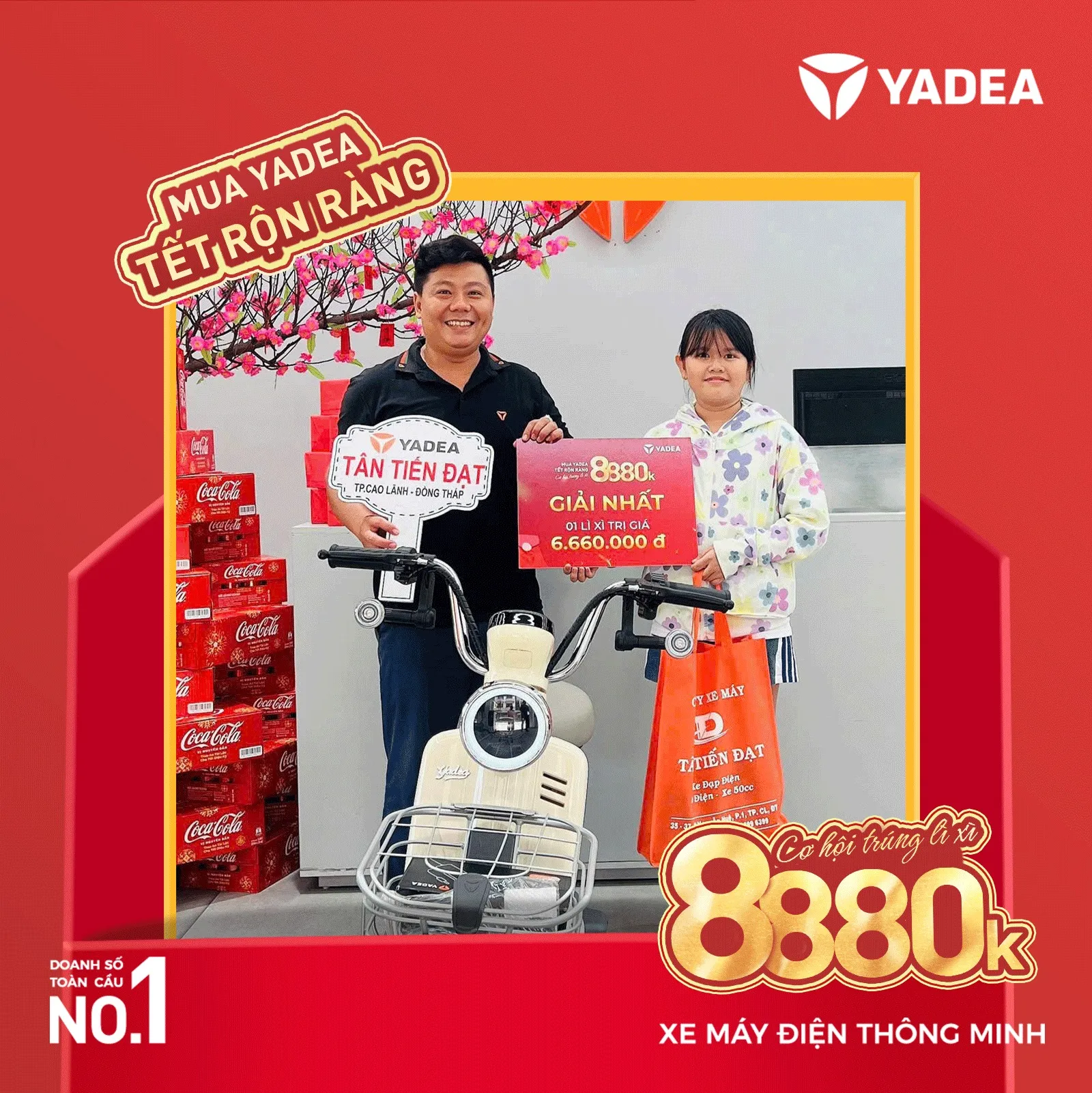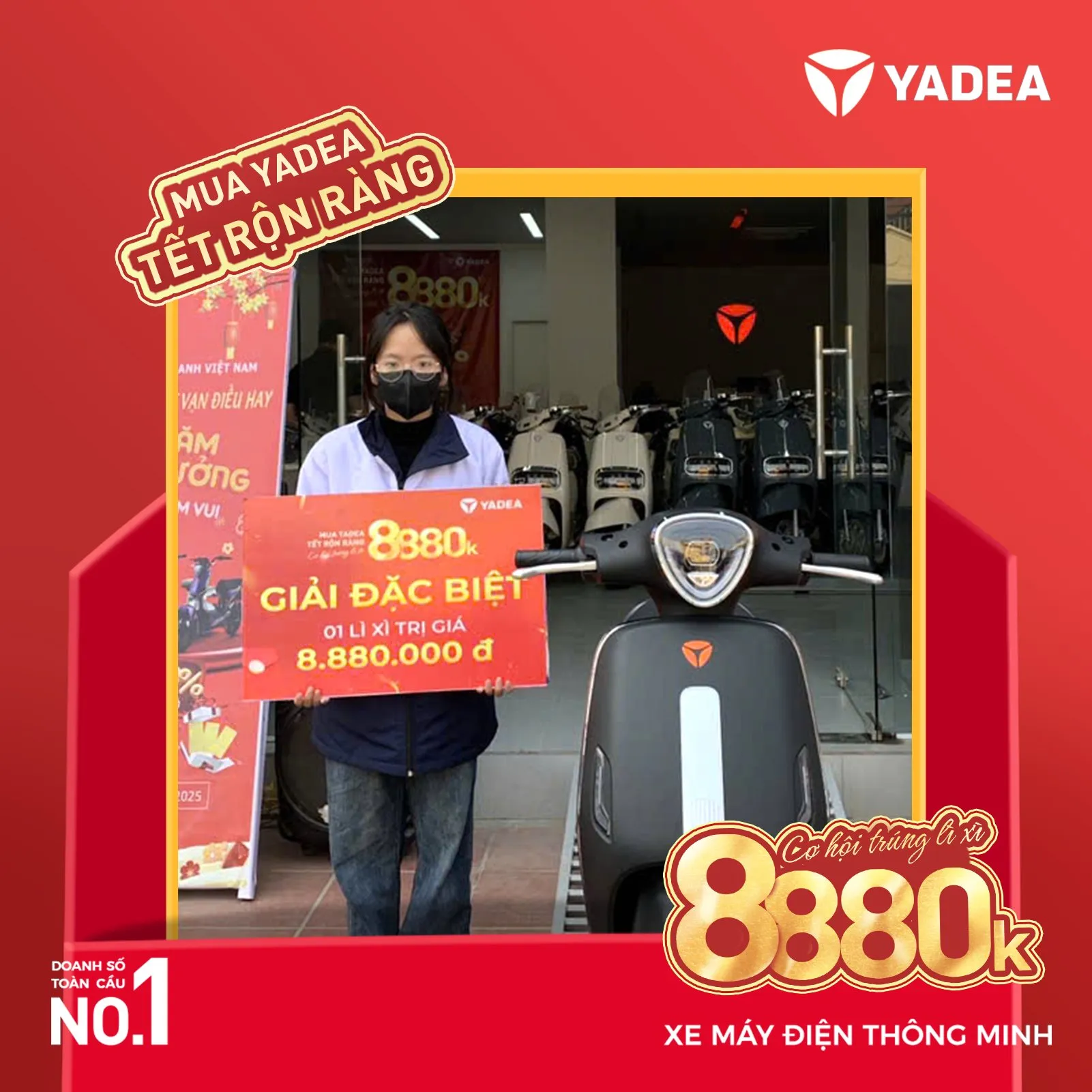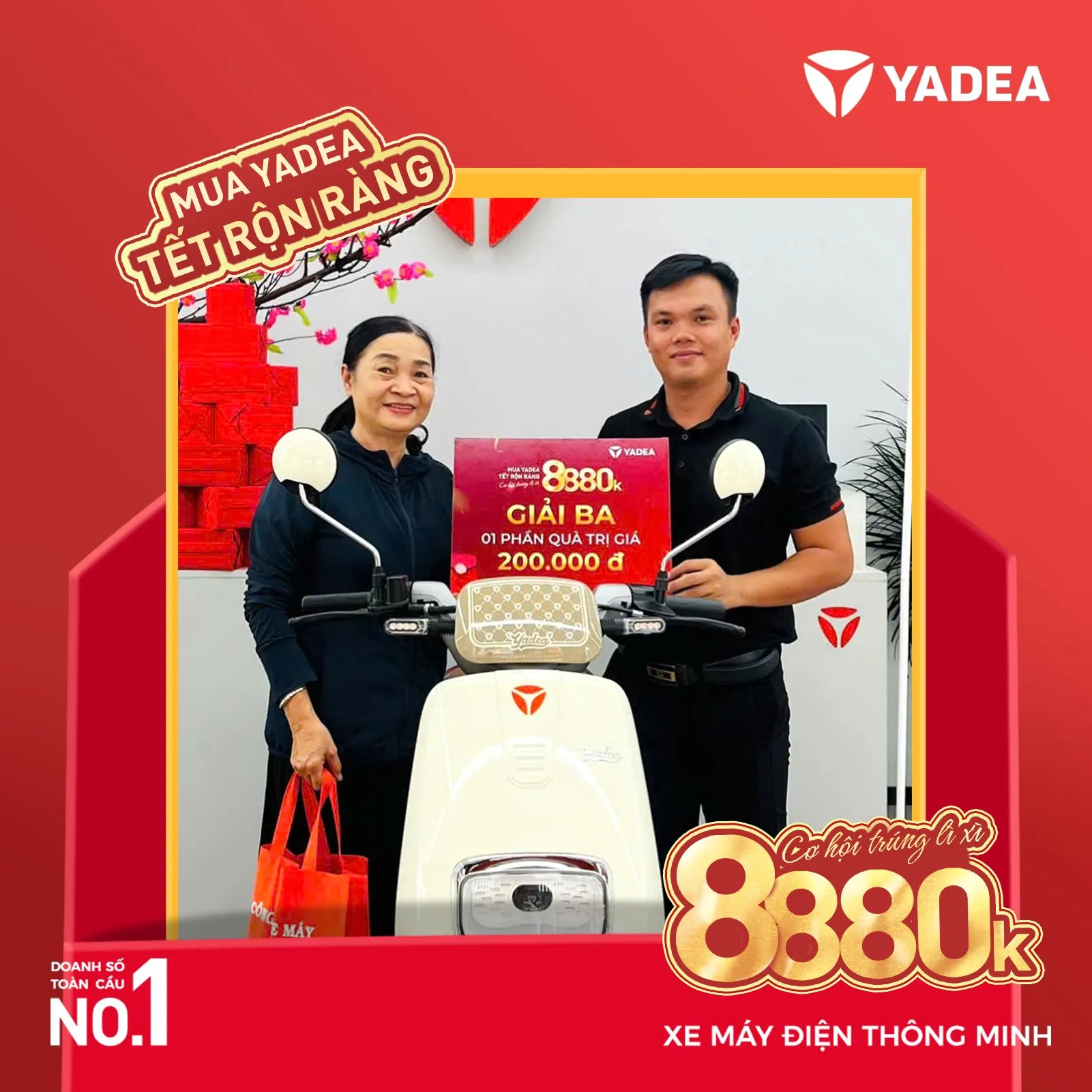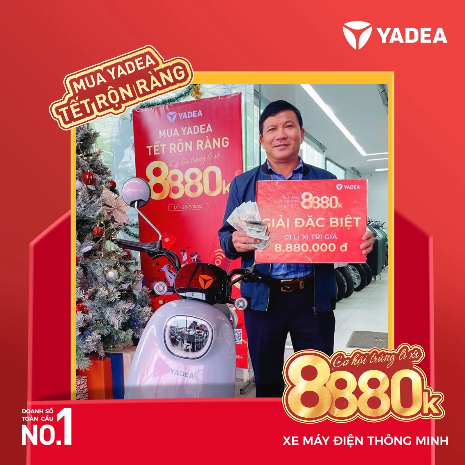 Chúc Mừng Năm Mới 2025, YADEA mang đến chương trình khuyến mãi đặc biệt: “MUA YADEA – TẾT RỘN RÀNG”, giúp khách hàng nhân đôi niềm vui khi mua xe điện cùng cơ hội trúng những phần quà giá trị.